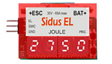 On battery connection, the limiter performs a self calibration and waits for the press/release transition of the start switch (on model release). On release, the limiter calculates the energy delivered by the battery. In the event the programmed limit is exceeded, the limiter issues a 20 mS negative pulse informing the e-Timer, that will cut power to the motor and continue the timing sequence the same way it would in case of expiration of the programmed motor time. All the functions following the motor cut off will be activated according to the programmed sequence, including the DT time. At the end of the flight you can check the total energy delivered by the battery.